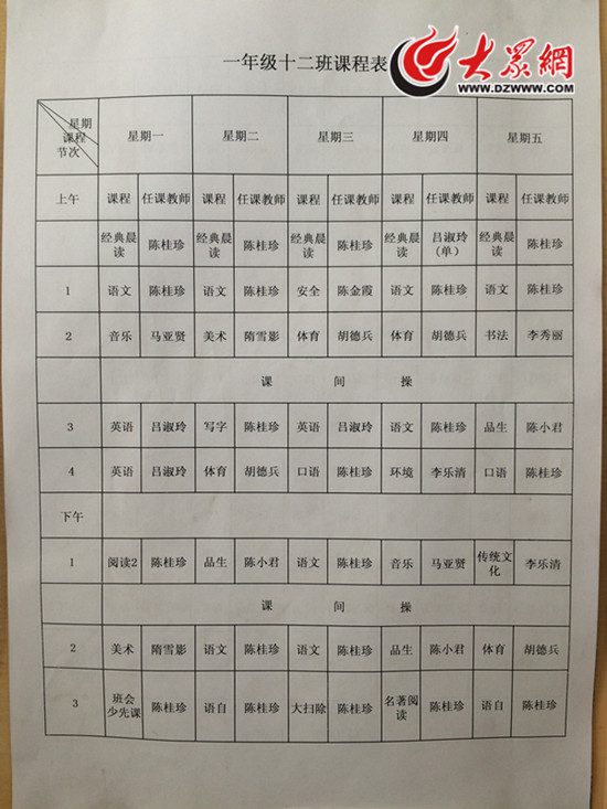 10月27日,在學校的一年級教室課程表上,大眾網記者看到,國家課程數學課已經被取消了。