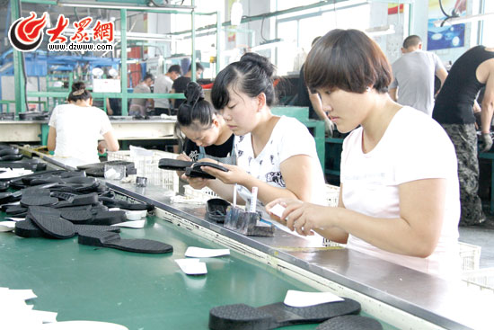 專造鞋底的鑫華潤公司工人在趕制特需鞋底。