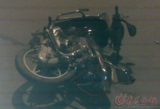 死者所騎的摩托車前車輪被撞飛(圖片源于網絡)