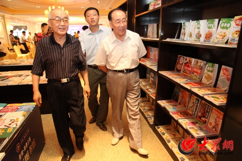 山東老年書畫研究會名譽會長宇培杲,山東新聞書畫院院長、山東新聞美術家協會名譽主席劉廣東參觀圖書館。