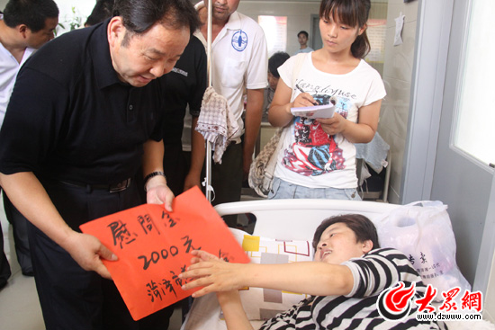 七月流火,卻熱不過“幫幫團”成員的愛心,采訪車疾駛3個多小時后,終于抵達菏澤市立醫院。此時,菏澤市慈善總會副會長兼秘書長陳慶峰、菏澤市慈善總會辦公室主任池宗民也聞訊趕來。旋即,四樓產科病房李雪的床前,成了愛的海洋。