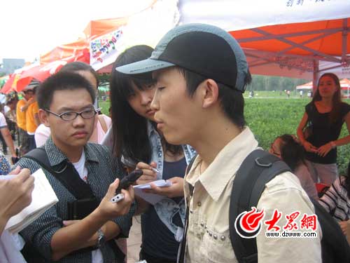 在山師宣傳部和歷山學院工作人員的組織下,賈作勝的“新聞發布會”就在報到現場開始了。在20分鐘的時間里,他有問必答,回答很健談,應對很老練,還有些“專業”,像是一名自己的“新聞發言人”。“下一個問題!”、“最后一個問題留給你!”這些很“專業”的辭令時不時冒出來。