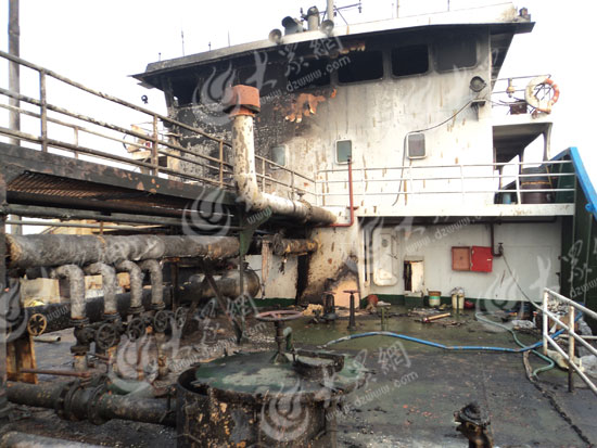 江蘇籍油輪麗陽號爆炸后的情景。(本網(wǎng)記者攝)