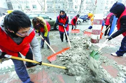 清積雪保暢通 百名百姓城管緊急上街掃雪