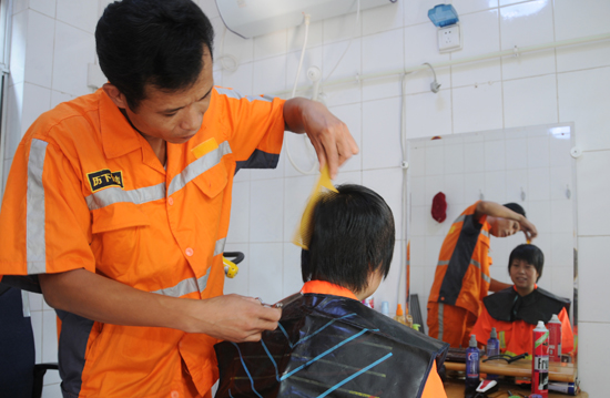 保潔員理發(fā)環(huán)衛(wèi)所買單 環(huán)衛(wèi)工理發(fā)店今開(kāi)張