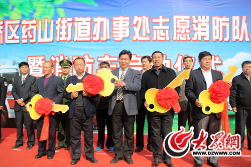 [提要] 隨著4輛消防車(chē)正式交付使用,山東省首支在城市社區(qū)配備專(zhuān)業(yè)消防車(chē)的志愿消防隊(duì),正式在濟(jì)南市天橋區(qū)藥山街道成立。