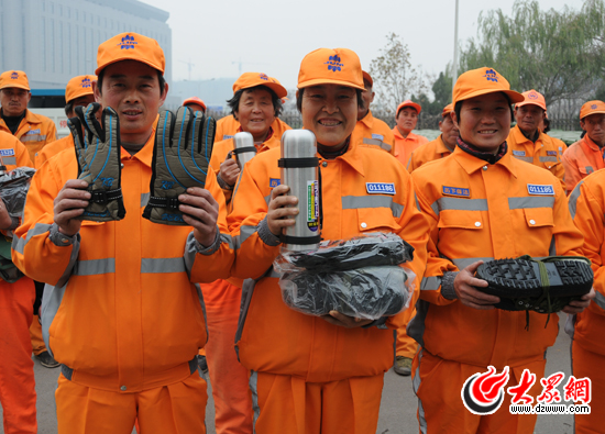 領到手套、棉鞋、保溫壺,環衛工人笑開顏!