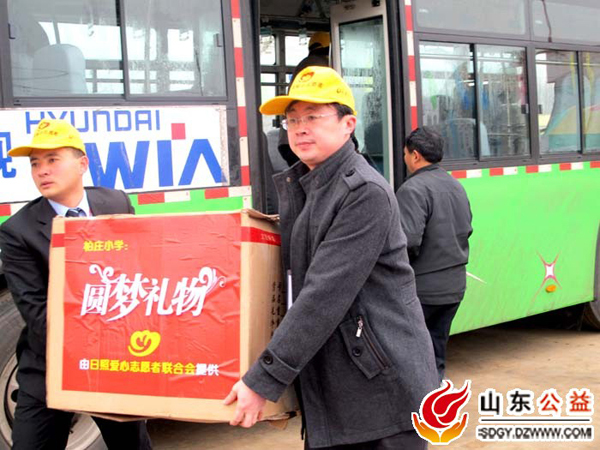[提要] “少喝一瓶酒,少抽一包煙,為留守兒童實現一個小小的夢想”。昨天是“雷鋒日”,日照團市委、日照 青聯和日照愛心志愿者聯合會把愛心人士捐助的價值2萬元的“圓夢禮物”送到莒縣桑園鄉柏莊小學,為252名孩子實現了久違的夢想,踐行了雷鋒精神。