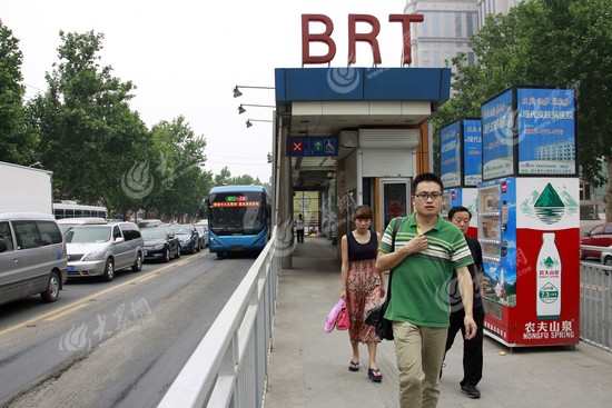 23日中午,在BRT公交新聞大廈站市民匆匆走出站臺。見習記者 楊春衛 攝
