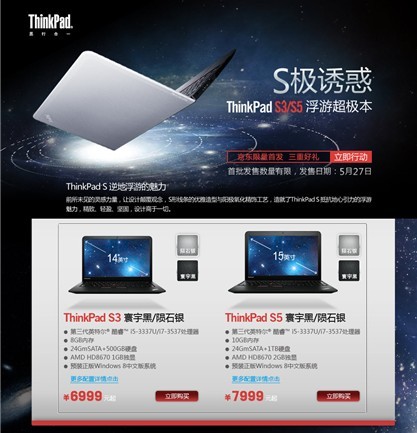 ThinkPad S3/S5山東首發(fā)活動:6月10日 青島CBD萬達廣場中庭;6月15日,濟南魏家莊萬達廣場西側中庭。凡在活動當日購買ThinkPad S3/S5的顧客,均可享受兩重浮游驚喜: