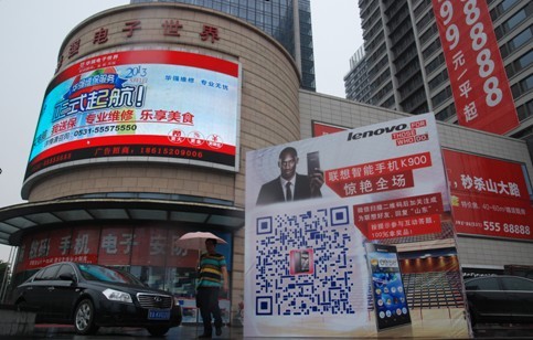 6月20日,聯(lián)想K900巨型二維碼亮相濟(jì)南華強(qiáng),著實(shí)吸引了眾人眼球,只要打開(kāi)微信,掃一掃,100%拿禮品!