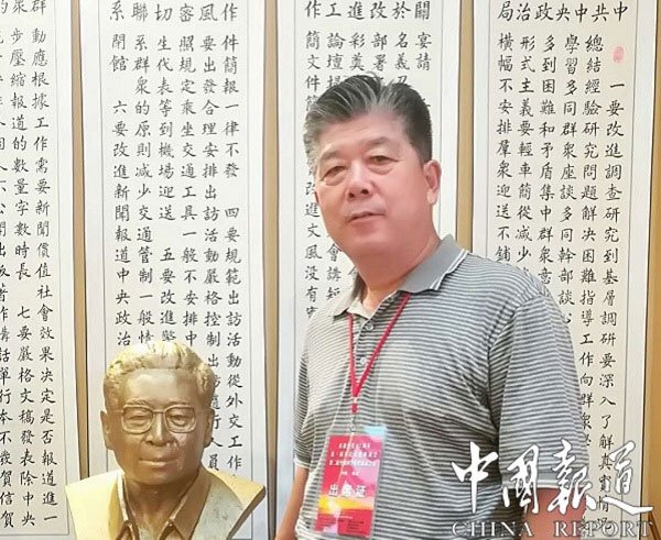 自牧代表日記雜志社向保定中國共產(chǎn)黨日記博物館捐贈“中國日記史研究第一人”陳左高教授塑像后留影.