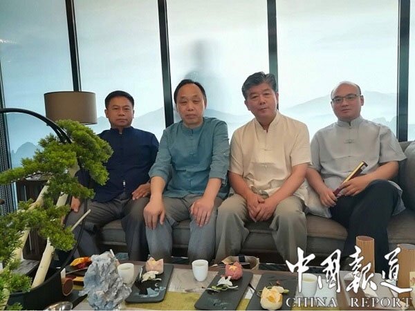 自牧(右二)與山東省散文學會副會長、垂楊書院主持人張期鵬(右一),《山東工人報》專版主編、畫家田鋒國(左二),山東農(nóng)業(yè)工程學院教授、作家馮惟榘合影。