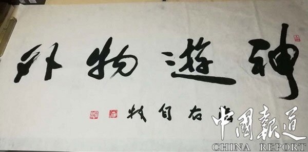 自牧先生書法凝重厚實,枯濃得當,端莊肅穆,筆觸靈動,蒼勁俊雅,力透紙背,瀟灑挺拔,方正中力求變化,變化中滲透著一種“質(zhì)樸”,足見先生對書法的深刻理解。縱觀他的書法作品使人感到新而不薄,華而不媚,成篇不失法度,小品不失豐贍,雄秀并舉,血肉豐滿,結(jié)構(gòu)天成。無疑,自牧先生深得圓融之道的精髓。自牧曾有詩曰:“庭前竹少堪容鶴棲,池種蓮多不礙魚歡;天曠地袤任展懷抱,墜露添流融匯自然。”幾十年來,他不但是這樣說的,也是這樣做的,祝“好人自牧”,一生平安。