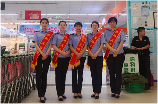 濟(jì)南市長(zhǎng)清區(qū)市場(chǎng)監(jiān)管局大學(xué)城女子執(zhí)法中隊(duì)的五名隊(duì)員均住在長(zhǎng)清城區(qū),辦公地點(diǎn)在大學(xué)城常春藤商業(yè)片區(qū),二十分鐘車(chē)程。通常,早上八點(diǎn),隊(duì)員們準(zhǔn)時(shí)在局里集合,隊(duì)長(zhǎng)楊洪霞接上她的同事們,開(kāi)啟了一天的工作。早上,正值上班高峰期,堵車(chē)嚴(yán)重,一般情況下,楊洪霞總會(huì)提前幾分鐘出門(mén),這個(gè)提前量,她自己心里早有規(guī)劃。