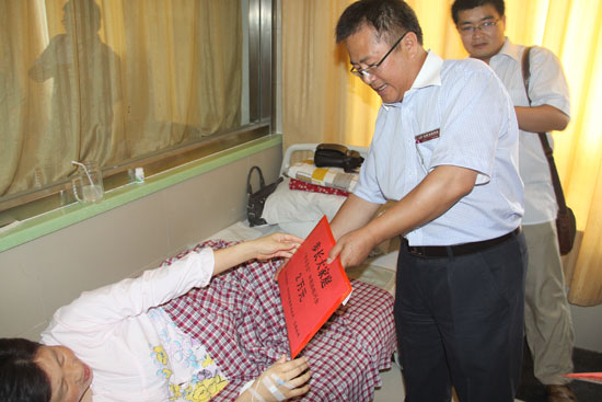 步長制藥生產副總裁劉魯湘帶去董事長給予的慰問金及山東五公司慰問金。