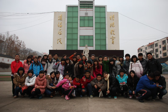 最后,志愿者們參觀了盲童宿舍,為他們收拾了東西。還有志愿者教孩子們疊方塊被子,盲童好奇的摸著,學得很認真。大家一起來到了操場,一個愛唱歌的盲童帶著類似話筒的東西在唱歌,看得出他很喜歡音樂。大家在歡快的氣氛中結束了在盲校的活動,在盲校的大門口合影。