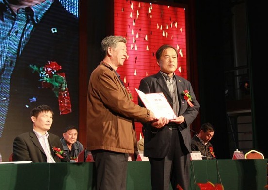 中國書畫院山東分院院長王金水(右)接受院長聘書。