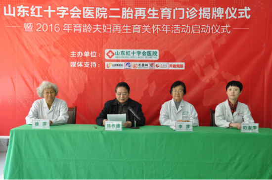 活動現(xiàn)場,山東紅十字會醫(yī)院韓作鋒院長與李萍主任共同為二胎再生育門診揭牌。韓院長在講話中表示,二胎再生育門診的設(shè)立,是山東紅十字會醫(yī)院為高齡再生育婦女及不孕不育家庭開啟的一條孕育綠色通道,隨著2016年再生育關(guān)懷年的全面開啟,山東紅十字會醫(yī)院還將推出包括生育力評估、再生育關(guān)懷幫扶等一系列公益援助活動,幫助更多有生育需求的家庭,讓他們抱上屬于自己的。
