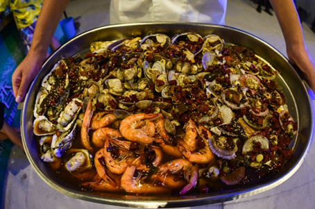 美酒少不了美食相伴,在青啤大篷現場有上百種中西結合的美味任意挑選,不僅有燒烤海鮮等青島特色美食,還有德國豬肘、香腸等品質德餐,帶來舌尖上的世界級享受;現場還新增明檔設計,制作過程全程可觀,讓顧客吃得放心。