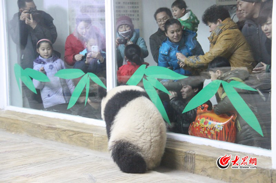 大眾網(wǎng)濟(jì)南2月6日訊(記者 赫洋 韋輝)今天上午,濟(jì)南市動(dòng)物園大熊貓新館正式開(kāi)館納客,兩只剛剛從四川臥龍碧峰峽基地引進(jìn)的大熊貓也第一次與濟(jì)南市民見(jiàn)面。為了一睹“國(guó)寶”的風(fēng)采,不少前來(lái)參觀的市民都特意起了個(gè)大早。而兩個(gè)小家伙也十分“給面子”,一會(huì)打滾,一會(huì)玩“倒立”,絲毫都不“認(rèn)生”。