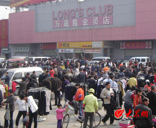 大眾網濟南4月5日訊(實習生 司君波)“便宜了,原價258元的皮包現在只賣100元”。萬嘉隆突然關門,閃了不少供應商和員工,很多超市的銷售商無奈在廣場上擺起地攤,打折處理商品。
