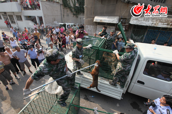 大眾網(wǎng)濟南6月21日快訊(記者 曹亮 趙洪棟 見習(xí)記者 李潤杰)今天上午,濟南市公安局治安支隊養(yǎng)犬管理稽查隊、天橋分局治安大隊稽查隊、堤口路派出所民警聯(lián)合行動,對濟南市公安局轉(zhuǎn)發(fā)的舉報線索進行查處。在天橋區(qū)勝利莊某小區(qū),違規(guī)養(yǎng)犬兩年多的“釘子戶”被查處,稽查隊耗用兩個多小時的時間才將21只無證犬只全部收繳,轄區(qū)周圍市民拍手叫好。稍后大眾網(wǎng)記者將帶來詳細報道。