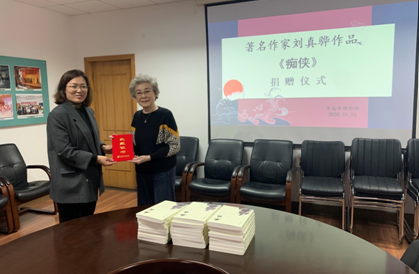 “弘揚(yáng)鐵道游擊隊(duì)精神,講述紅色經(jīng)典作家的動(dòng)人故事”,青島市圖書館又獲贈(zèng)一珍貴文獻(xiàn)資料!近日,“著名作家劉真驊作品——《癡俠》”捐贈(zèng)儀式在青島市圖書館會(huì)議室舉行。青島市圖書館館長(zhǎng)徐月霞、副館長(zhǎng)陳東慶參加捐贈(zèng)儀式,接收捐書。