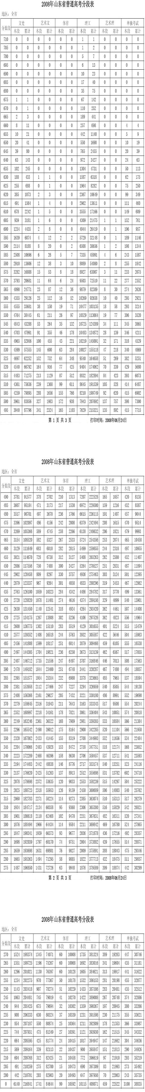 山東公布2008年普通高考分?jǐn)?shù)線分段表