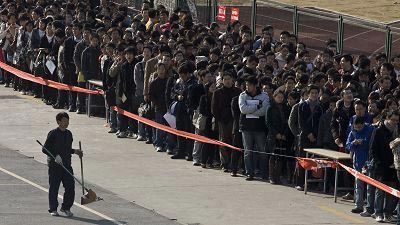 資料圖片:上海大學生凌晨排隊求職