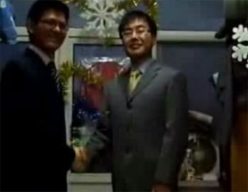 主持人在介紹完新聞內容梗概后,進入了新聞主體內容。在這幾條新聞中,幽默的語言和表演隨處可見。最先播出的是“河北區”區委主席于書勝(來自河北省)和“四川區”區委主席竇議(來自四川省)召開座談會。這段“新聞”中,兩名同學從各自座位站起,熱情握手,在談話中,后面還有一名同學在認真地做著“會議記錄”。會議結束后,兩人還非常正式地簽訂了《共赴上海條約》,相約在2009年共赴上海發展。條約內容也頗為搞笑,其中第二條為:“如果哪一方反悔,則視為主動放棄做男人的權利。”