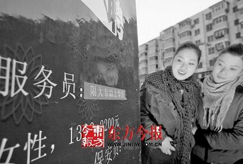 位于鄭州市金水路上的一家餐飲店也招了十幾名大學生做服務員。該店董事長陳新富介紹:“過去我們也想招聘一些大學生,雖然待遇不低,但他們不愿意來。現在就業形勢不太好,他們改變了觀念,也愿意來了。”