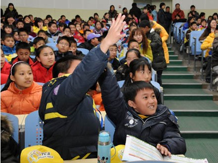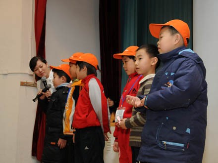 隨后是"考考你,北京知多少"文化交流互動(dòng)環(huán)節(jié)。"北京的哪個(gè)園林被譽(yù)為'萬園之園'?"、"猜猜老北京的方言'套瓷'、'發(fā)小兒'是什么意思?"、"京劇臉譜的黑色都表示什么性格的人物?"、"北京奧運(yùn)會(huì)福娃都各自代表什么寓意?" ……北京小朋友的問題一出,下面全國各地的學(xué)員們馬上熱烈響應(yīng),全場一時(shí)熱鬧非凡,笑聲不斷。通過這一環(huán)節(jié),全國各地的同學(xué)們了解了更多關(guān)于北京的知識,也與北京小朋友們很快地熟悉起來,對新環(huán)境的陌生感一掃而空。在這種其樂融融的氣氛中,開幕儀式順利落下了帷幕。