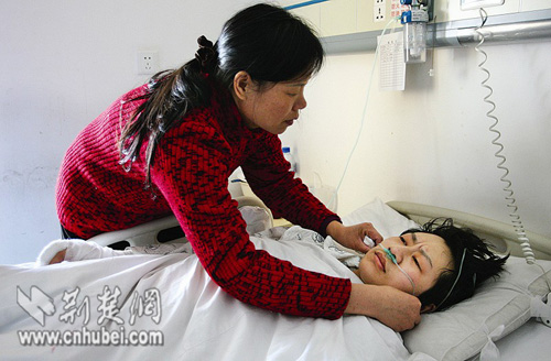 “凱凱,我們馬上將你轉到協和醫院,你一定會好起來的!”昨(1)日下午4時許,在武漢市第五醫院住院部,江小蘭女士緊握兒子徐凱的手,低聲安慰。此時,淚水已悄悄地滑過她憔悴的臉龐……