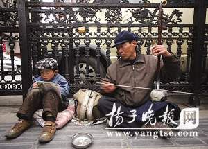 春節(jié)前,浩浩跟著爺爺坐了二十幾個小時火車來到南京乞討。浩浩的爺爺說:“同村的人告訴我們,南京人特別善良,不欺負外地人,愿意幫助我們這樣困難的人”。白天,爺孫倆坐在南京街頭,爺爺拉二胡賣藝乞討。老人拉了一曲《繡金匾》,“正月里鬧元宵,金匾繡開了……”摸著陳舊的二胡,老人不好意思地笑了,“這手藝好些年不碰了,曲子都是自己摸索出來的。”
