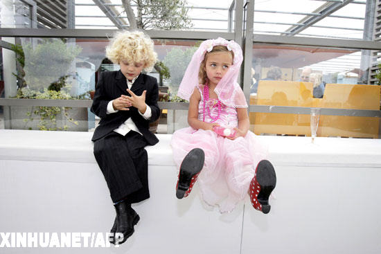 資料圖片:2008年7月9日,在荷蘭的阿姆斯特丹的科學博物館,白克爾(左)和萊維在說完“我愿意”之后心神不寧地坐在一起。當天是“兒童婚禮日”,孩子們可以在這一天結婚,但是這種“婚姻”關系在日落后就宣告結束。 新華社/法新