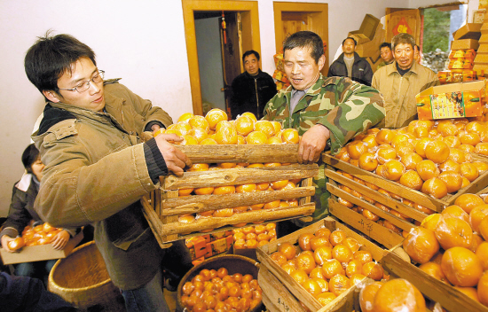昨天傍晚,浙江傳媒學院大二男生巫小賓正和父親將一箱箱沉甸甸的橘子打包裝好,準備啟運杭州。