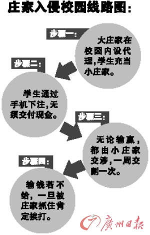 在對學校的做法感到不滿的同時,讓所有人震驚的事實卻是,該校三名學生竟然通過手機下注,接連輸了上百萬。無錢還債,莊家來校抓人,學生害怕不敢返校。