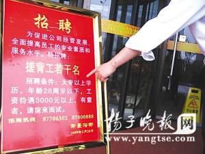 揚(yáng)州一家大規(guī)模浴場20日打出一則很“牛”的廣告:招聘搓背工,要求學(xué)歷最低大學(xué)專科。廣告一出,業(yè)內(nèi)嘩然,搓背工要求大專文憑,這在“沐浴之鄉(xiāng)”揚(yáng)州還是破天荒頭一回。該浴場稱此舉是為“提升揚(yáng)州沐浴層次”,但不少同行認(rèn)為是“炒作”、“玩噱頭”,讓大學(xué)生當(dāng)幾無文化要求的搓背工,實(shí)在是人才浪費(fèi)。記者昨日獲悉,廣告打出幾天時(shí)間,已有超過50名當(dāng)?shù)貙?聘咝?yīng)往屆畢業(yè)生前來應(yīng)聘。