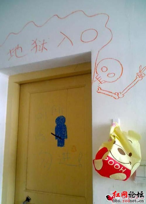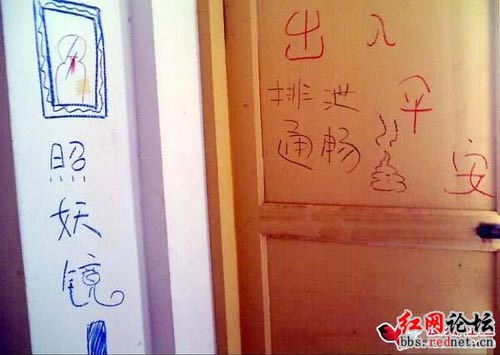 新婚快樂!天堂入口,地獄入口,照妖鏡……臨近寒假,某大學的一群女生集體在宿舍墻壁上涂鴉,創作了一批讓她們沾沾自喜的“杰作”。有好事者把“杰作”拍下來,發到紅網論壇,引來上萬網友回帖無數。