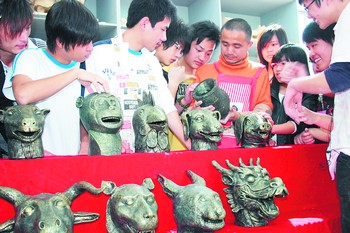 “當時關于十二生肖銅像的話題很熱,我覺得若是仿制出十二生肖銅像,豈不是對學生進行愛國主義教育的好素材?”仿銅十二生肖獸首制作者的指導老師錢正財告訴記者。錢老師將這個想法跟自己的學生們一說,大家都很感興趣。于是他從所教的學生中確定12人,每人負責一個仿銅獸首的制作。