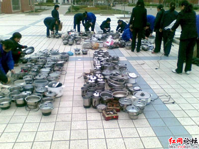 曉云指出,用熱得快燒熱水要比在天寒地凍的天氣里頂著寒風(fēng)去水房排好長的隊(duì)打水方便的多:“另外學(xué)校的食堂也長期處于校內(nèi)壟斷狀態(tài),飯菜越來越難吃,份量越來越少,而價(jià)錢卻越來越高,所以我們干脆自己用電飯鍋、電磁爐開伙了,改善下生活。”