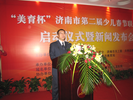 2009濟南市首屆少兒春節聯歡晚會的成功舉辦,在泉城120萬少年兒童中引起了熱烈的反響。為了做大、做強“少兒春晚”這一文化品牌,同時在中華民族傳統節日——春節,給泉城少年兒童奉獻更加精美的精神文化大餐,濟南市委宣傳部、濟南電視臺、濟南市關工委、共青團濟南市委、濟南市婦聯、濟南市文化局、濟南市教育局等單位擬在去年成功舉辦首屆少兒春晚的基礎上,特舉辦2010“美育杯”——濟南市第二屆少兒春節聯歡晚會。