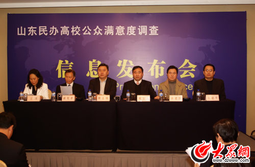 大眾網青島1月12日訊(記者 劉亮亮 趙洪棟)在山東省20所民辦高校中發放問卷2000份,回收有效問卷1984份,調查先后歷時4個月,圍繞學校教學、生活、實習就業、管理等方面共58個問題進行了調研。2010年1月12日,由中國民辦教育協會高等教育專業委員會主辦,山東大眾報業集團大眾網承辦的山東省首次“山東民辦高校公眾滿意度”調查活動在青島香格里拉大飯店舉行信息發布會,公布了調查結果。青島濱海學院、煙臺南山學院和濰坊科技學院滿意度得分位列前三。