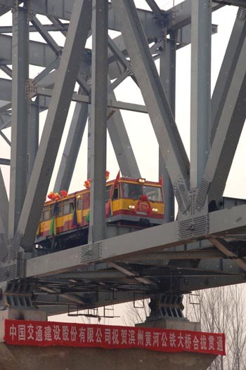 The first highway-railway bridge on the Yellow River is finished in Binzhou, east China's Shandong Province December 30, 2006. The 7,000-metre bridge ended the history of Binzhou as a former revolutionary base without railways.