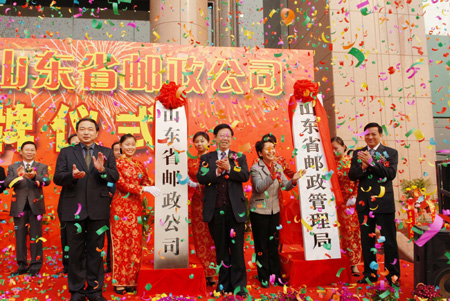 A ceremony is held to announce the official separation and establishment of Shandong Post Corp and Shandong Postal Administration Bureau in Jinan, East China's Shandong Province today. Shandong Post Corp is the first provincial post company to be established since China Post Group was founded in Beijing on January 29, 2007. |