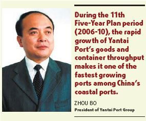 "During the 11th Five-Year Plan period (2006-10), the rapid growth of Yantai Port's goods and container throughput makes it one of the fastest growing ports among China's coastal ports," said Zhou Bo, president of Yantai Port Group.