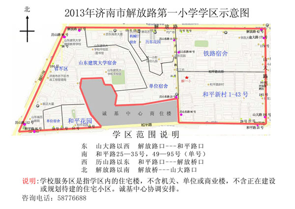 解放路第一小學學區公示示意圖