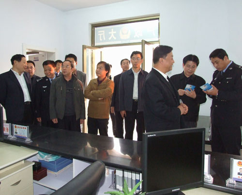10月30日,中央政法委司改辦公室高景峰一行4人在省政法委綜治辦領導、德州政法委書記李傳武、樂陵市委書記楊光來、市長鄂宏達等領導同志的陪同下,到樂陵市公安局調研司法體制改革和執法規范化建設工作。