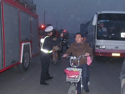 二是領導親自指揮,科學部署警力,處置得當。接到通知后,支隊秩序科劉建新科長、直屬一大隊大隊長賈立國、政委孫效為、副大隊長路衛東及時趕往現場,對現場進行詳細分析調查,科學部署警力。一方面在事發地南北兩側設置卡點,做好消防通道疏通工作及過往車輛疏導工作,為消防車輛的進出、過往車輛通行提供了有力保障;一方面在道路兩側部署警力,對在路邊觀望、圍觀的群匯進行勸導,確保了事發地周圍道路的暢通及圍觀群眾的人身安全。